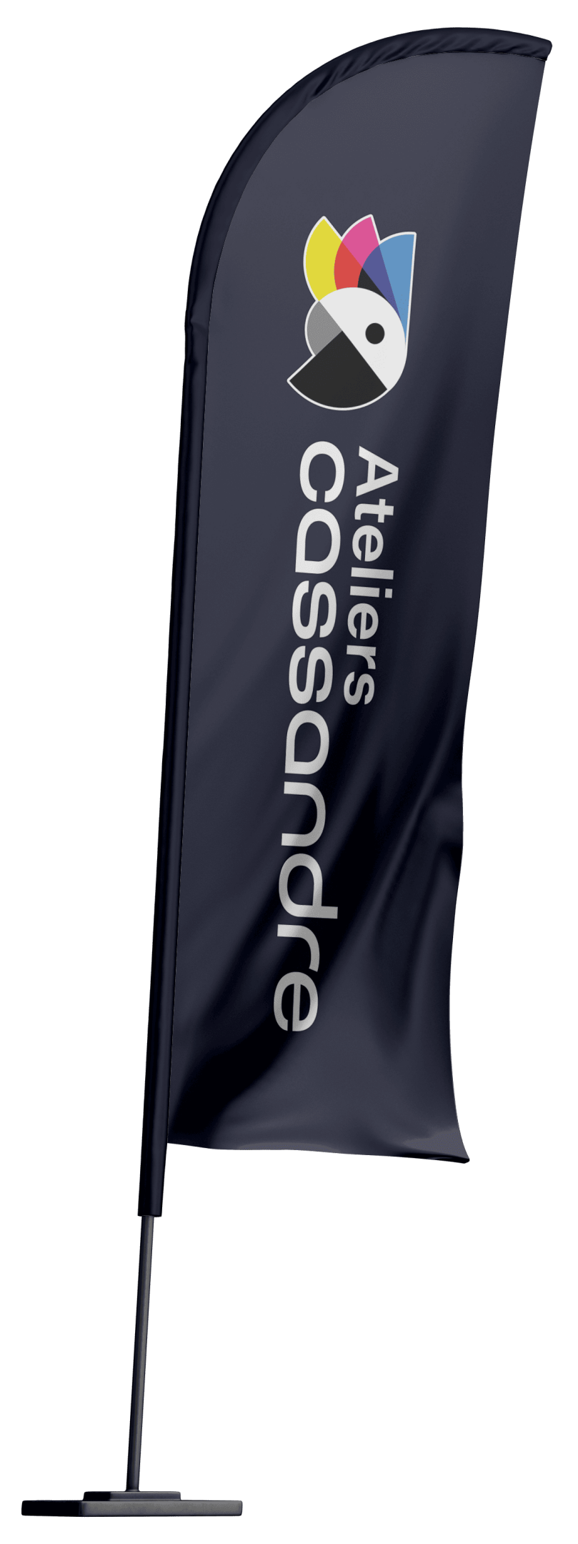 Le drapeau plume également appeler oriflamme ou encore beachflag s'inscrit parfaitement dans la dynamique de communication visuelle. Son élégance et sa dynamique transmettent une image professionnelle et captivante pour une visibilité longue distance.