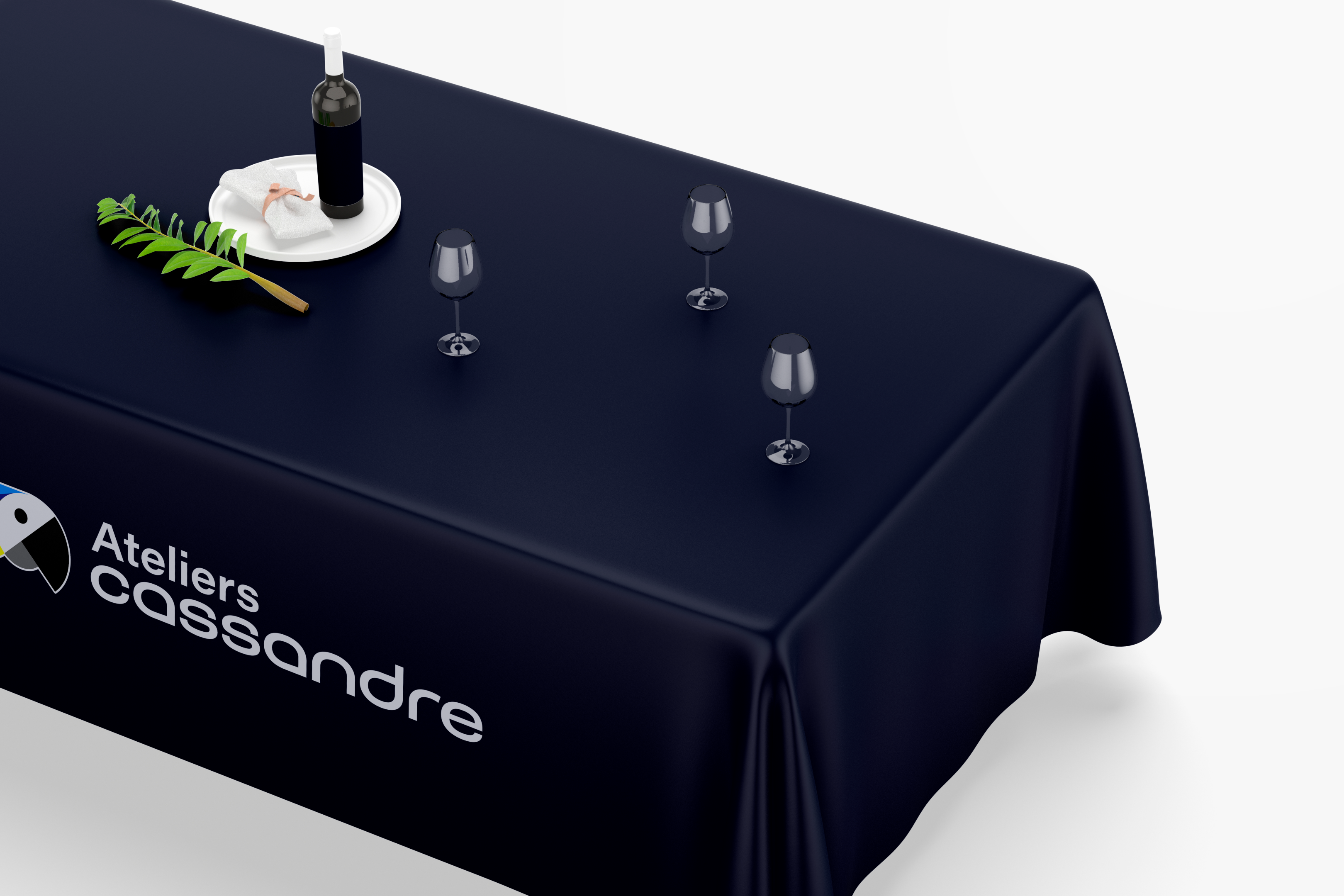 Grâce à notre service sur mesure et notre réactivité, nous vous accompagnons dans la conception de nappes adaptées à vos besoins, avec une impression fidèle à votre identité visuelle. Optez pour un support textile à la fois pratique, esthétique et efficace pour marquer les esprits lors de vos événements.
