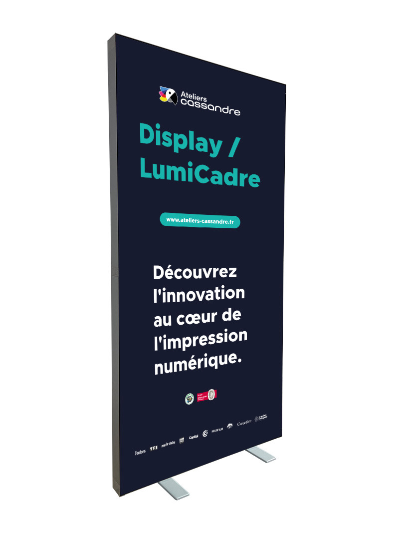 Le LumiCadre, aussi appelé Easyframe Totem, est la solution idéale pour maximiser la visibilité des entreprises, marques et événements. Son design moderne et épuré en fait un support parfait pour les stands, showrooms, halls d’accueil, salons et points de vente.